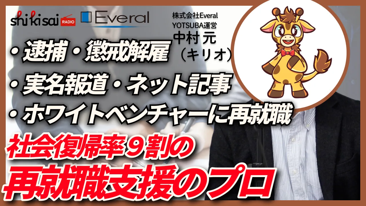 逮捕・懲戒解雇を経験 社会復帰を支援するキャリアコンサル / 中村元(キリオ)株式会社Everal 社会復帰支援サービス YOTSUBA